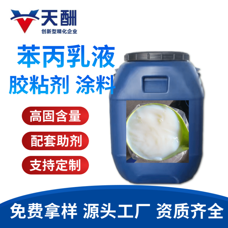 天酬供应高含量苯丙乳液 金属表面乳胶涂料 纸品胶粘剂 耐水耐油