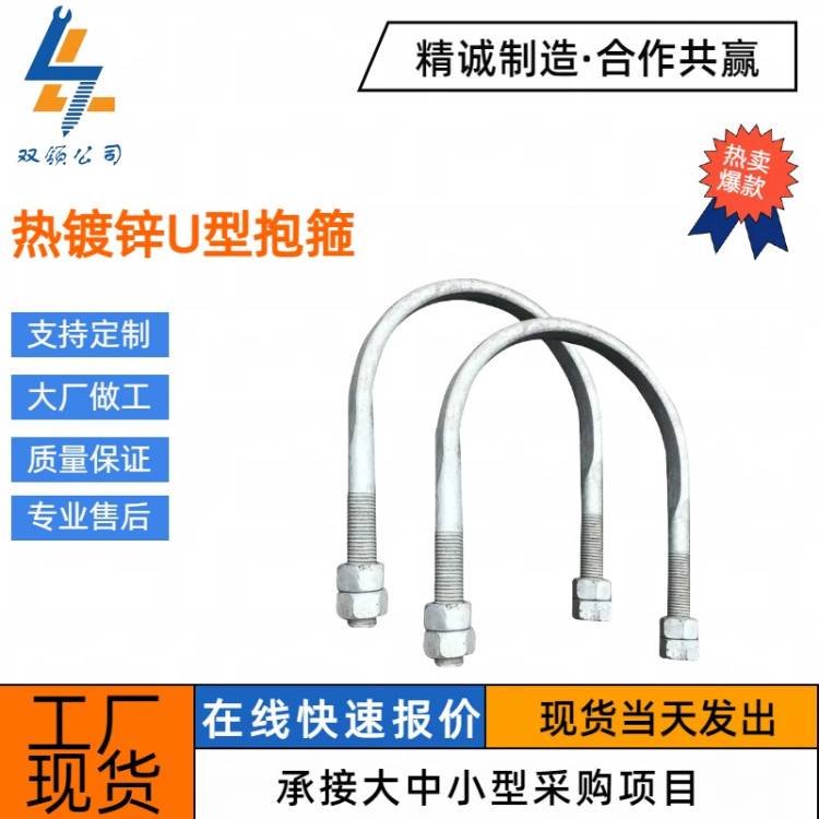 双领公司供应 U型扁铁抱箍 热镀锌u型螺栓电力抱箍 管卡管道固定