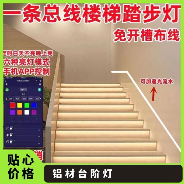 网红楼梯灯 踏步感应智能台阶灯带led追光跑马流水灯梯步灯