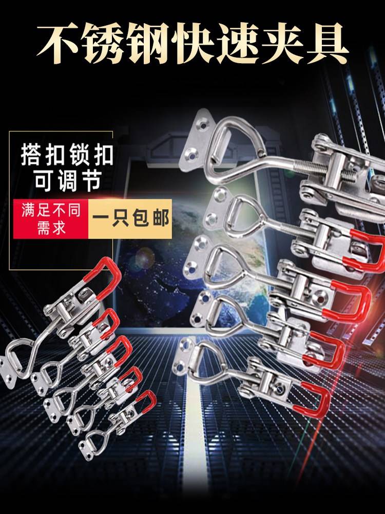 304不锈钢快速夹具可调节扣式压紧夹简易门栓搭扣箱包锁紧器锁扣