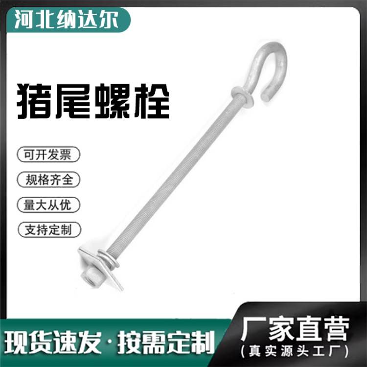 热镀锌猪尾螺栓 吊环钩形电力用螺丝开口羊眼栓 纳达尔