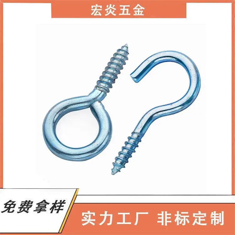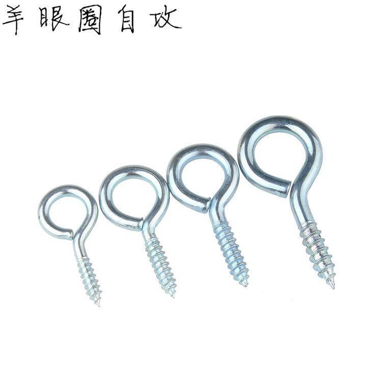 镀蓝白锌羊眼钉自攻螺丝钉挂钩吊环铁钩子木螺丝钉问号钩1—16
