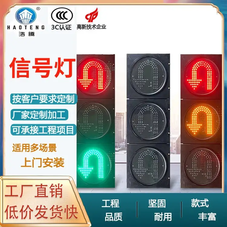 马路道路交通灯 市电调头交通信号灯 丁字十字路口转头 红绿灯