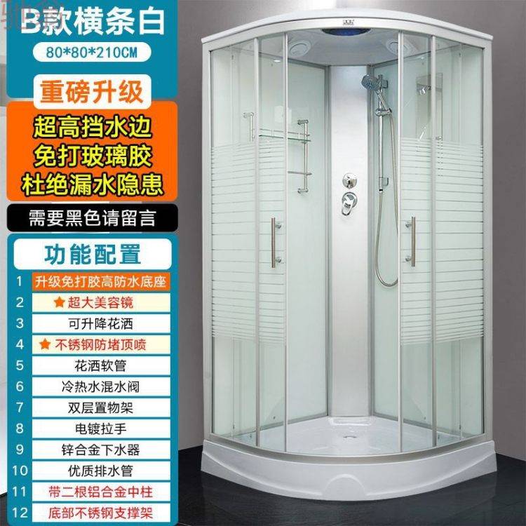 包安装整体浴室淋浴房滑轮玻璃扇形隔断洗澡家用一体式封闭沐浴房