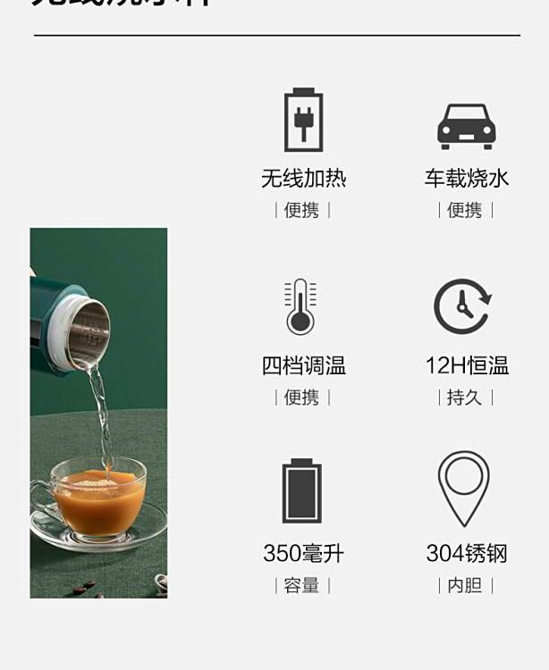 无线充电便携式加热烧水杯车载电热杯电热水杯小型旅行不插电
