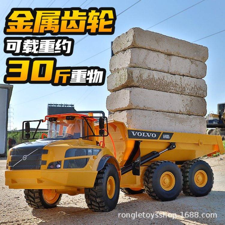 双鹰E591沃尔沃遥控铰接自卸车翻斗车合金丝杆男孩玩具电动工程车