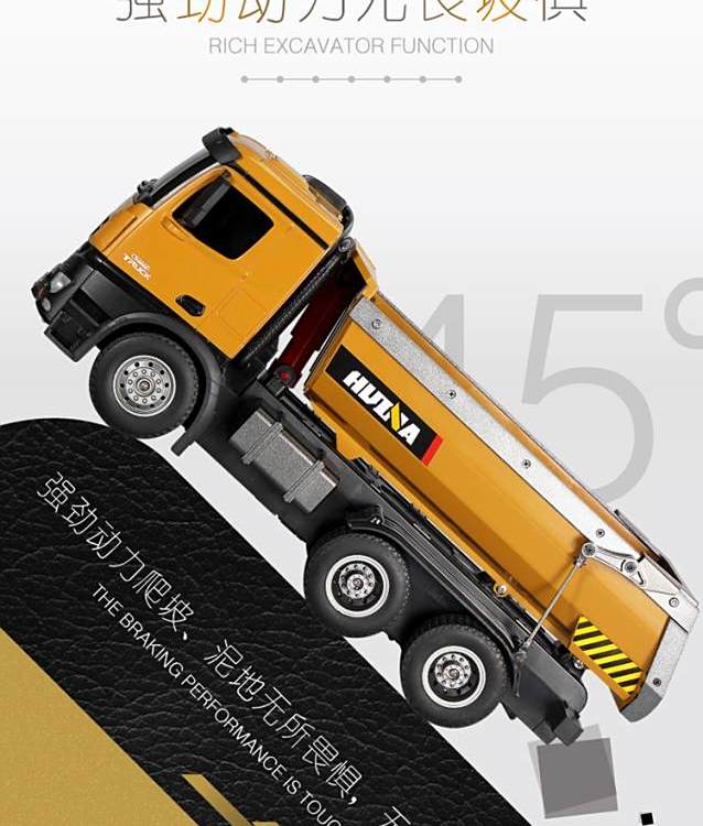 汇纳582十通道1:14合金自卸车翻斗车遥控工程车大号拉土儿童玩具