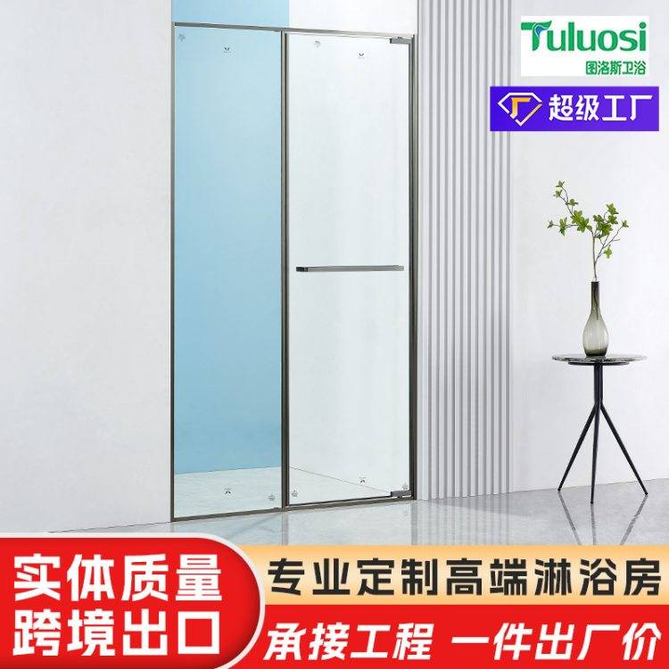 一字型平开门静音304不锈钢淋浴房 枪灰洗澡间隔断钢化玻璃淋浴房
