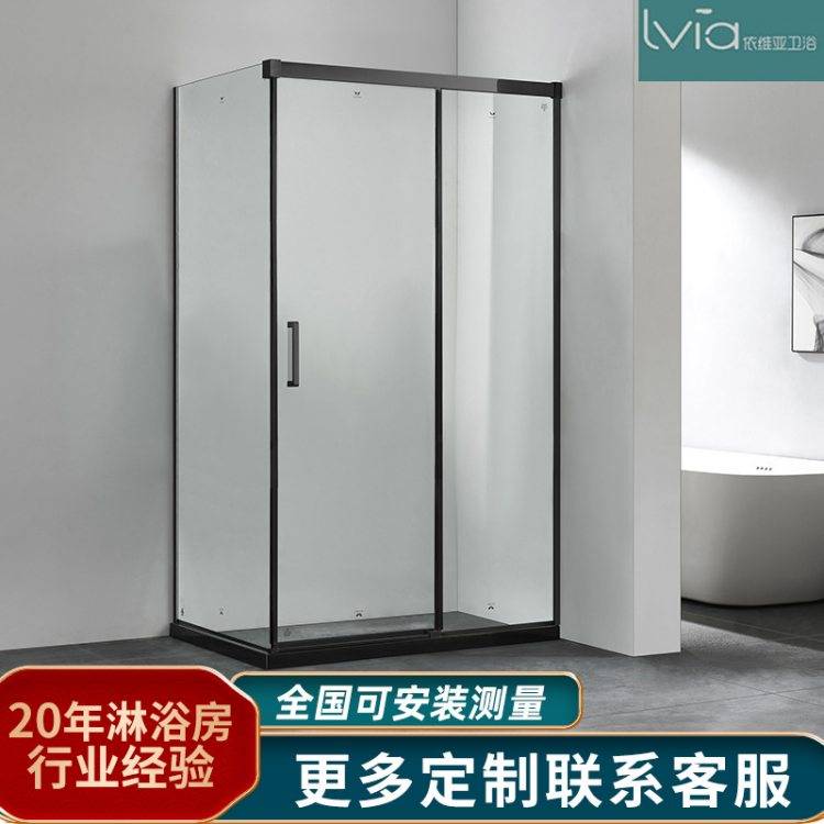 佛山淋浴房厂家直供方形哑黑淋浴房静音滑轮平开门干湿分离家用