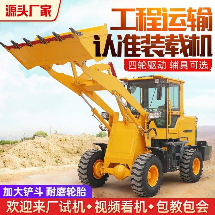小型铲车建筑工地沙石农用养殖清粪抓草装载机柴油液压四驱推土机