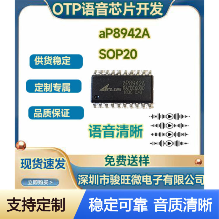 AP8942A骏旺微编程指令控制 OTP语音IC 稳定可靠按需定制 矿井提示音