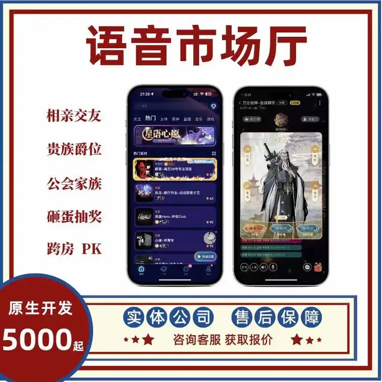 语聊交友语音房app开发定制系统社交商城直播聊天软件源码小程序