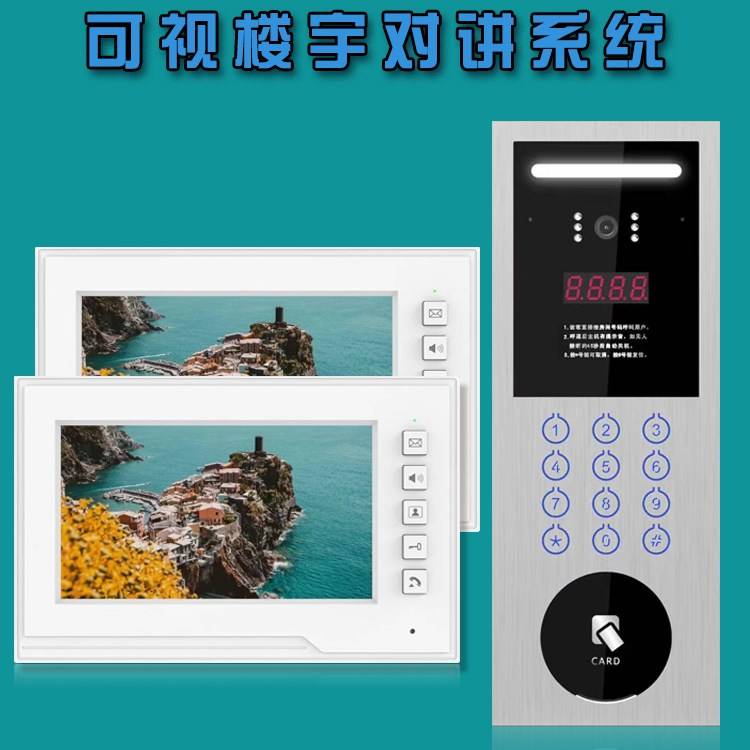 7寸彩色可视楼宇对讲门禁系统单元门小区对讲门铃ID IC刷卡套装