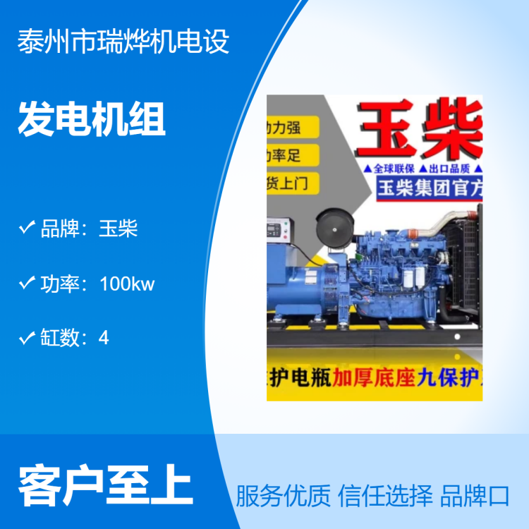 100kw玉柴发电机 电子调速 电启动 自启动 品质保证 适用工地施工用电
