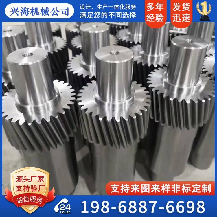 兴海机械 齿轮碳钢花键传动轴 变速箱轮轴 非标齿轮轴 伞齿轴花键轴
