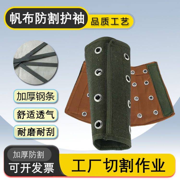 帆布防割护袖耐磨防刺防刮加厚钢圈舒适透气建筑工厂车间劳保护袖