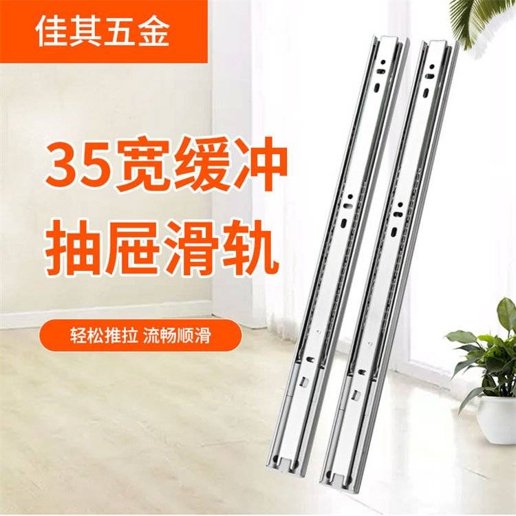 推拉画滑轨 电表箱滑道三节轨35宽钢珠抽屉滑轨