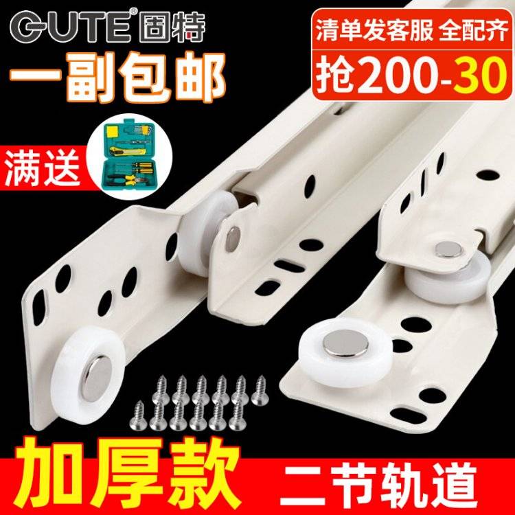 固特衣柜抽屉轨道滚轮滑轨托底滑道家用二节导轨键盘托架滑轨