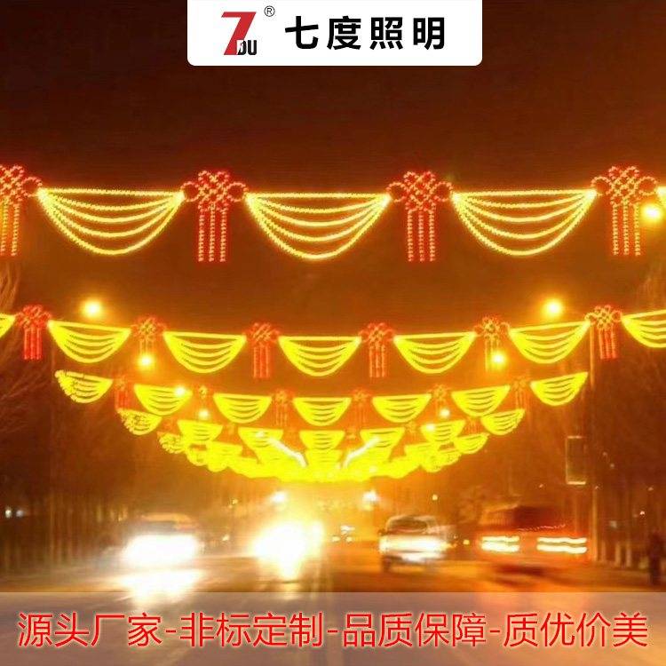 七度照明LED气氛跨街灯串 灯杆中国结造型灯 商业街道过街装饰灯