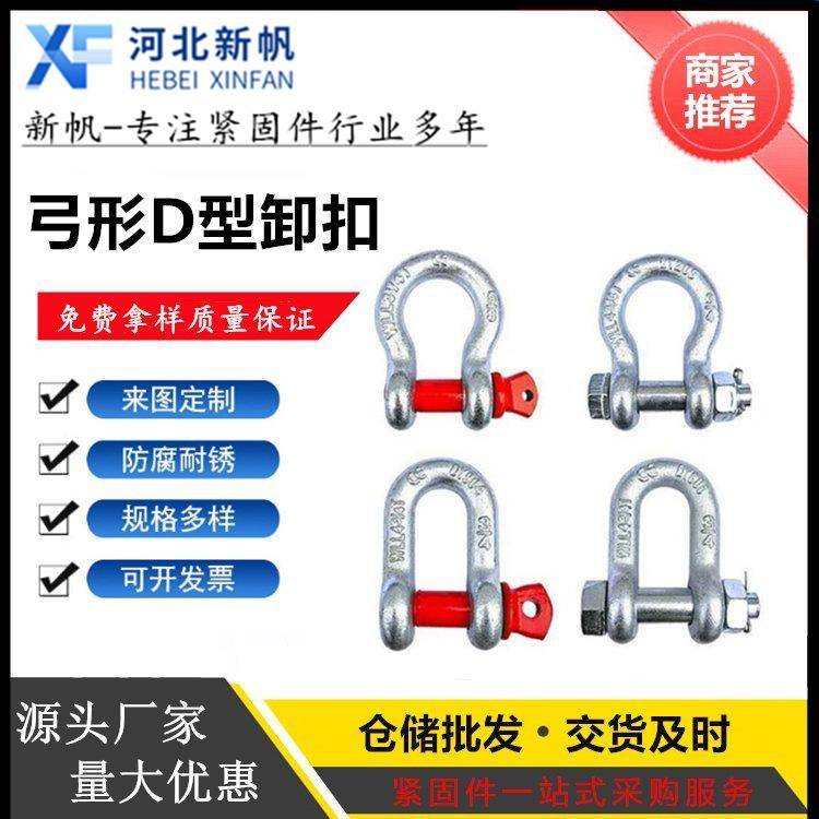 云飞 美式弓形卸扣 起重高强度船用d形u型马蹄扣吊钩马蹄形扣