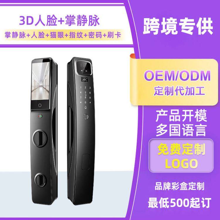 跨境涂鸦人脸识别掌静脉指纹锁厂家 智能家居全自动可视猫眼智能锁