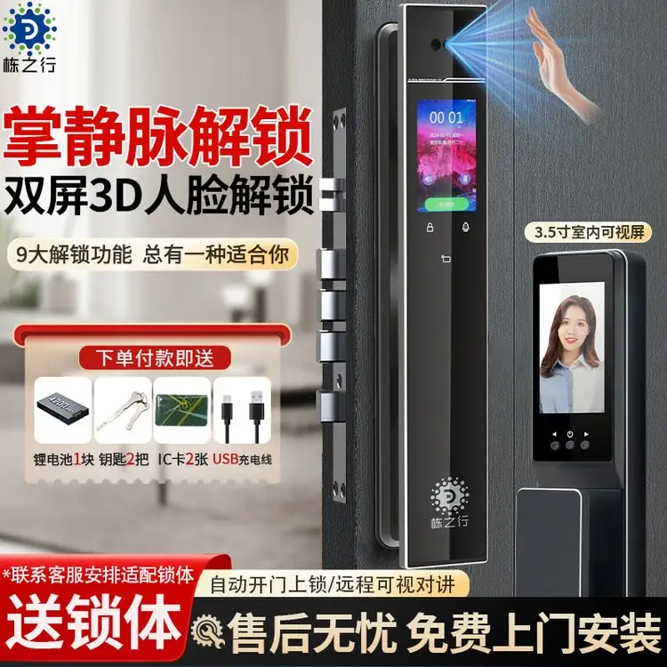 栋之行掌静脉指纹锁3D人脸解锁全自动电子智能门锁密码锁