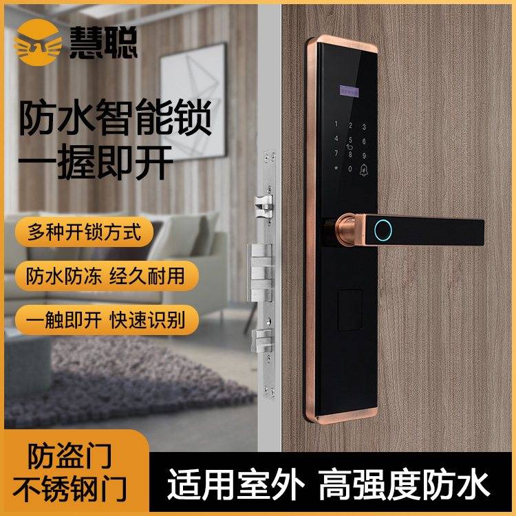 慧聪防水防冻智能锁户外防盗门密码锁别墅庭院门室外防雨指纹锁