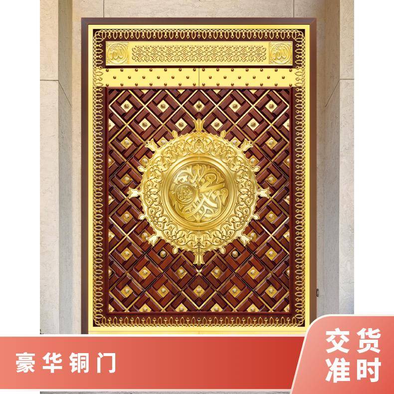 豪华铜门 定制 拼色风格 家居用门 指纹锁 爱唯铜艺对开门