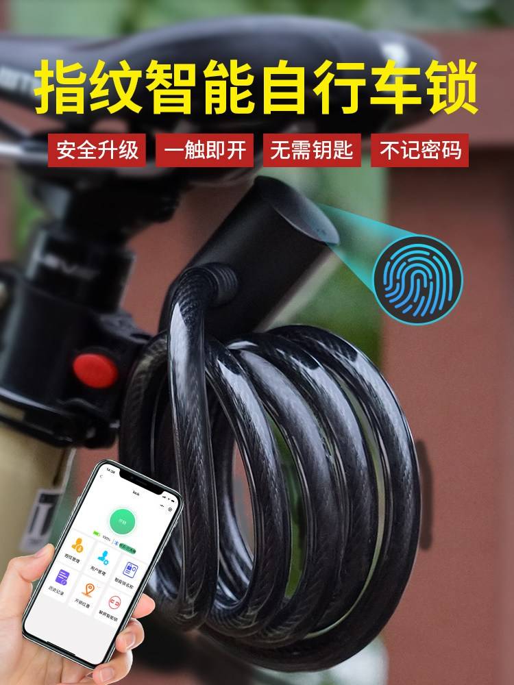 指纹自行车锁防盗锁链条锁便携单车智能密码门锁山地车锁神器