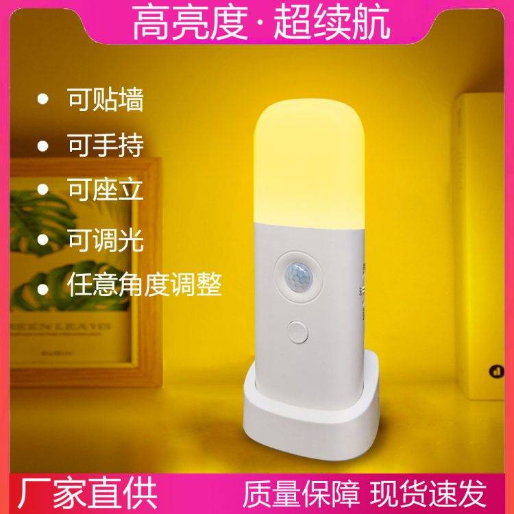 智能红外人体led感应灯小夜灯调光USB充电卧室床头灯跨境