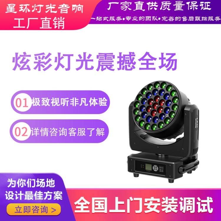 37颗15W大蜂眼摇头灯,炫酷染色光束,点燃全场酒吧宴会厅氛围