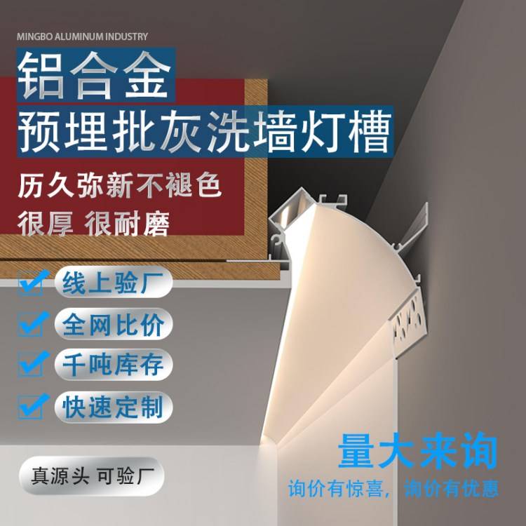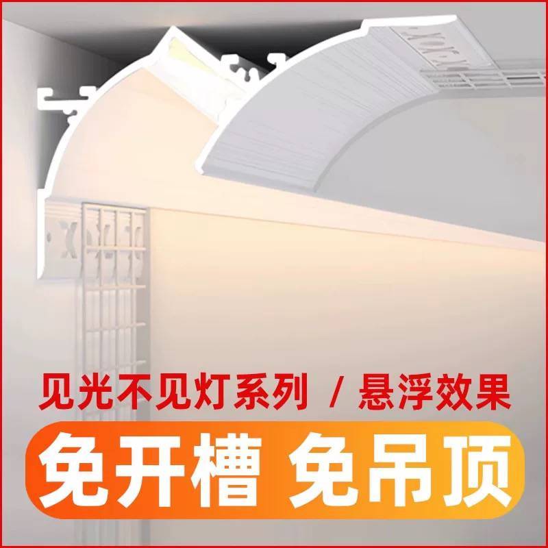 免吊顶反光灯槽铝合金回光灯悬浮吊顶洗墙灯预埋批灰明装石膏线