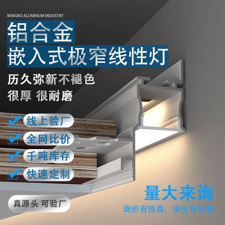 极窄阴影缝回光灯槽客厅预埋灯铝型材悬浮吊顶玄关过道下发光洗灯