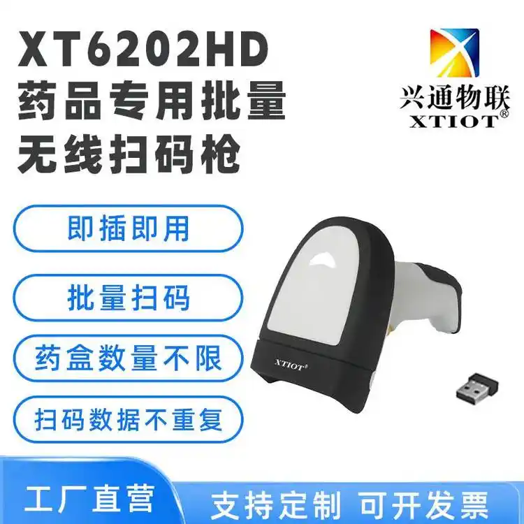 XTIOT XT6202HD批量条码扫描仪 无线扫码扫描枪 药品追溯码扫码枪