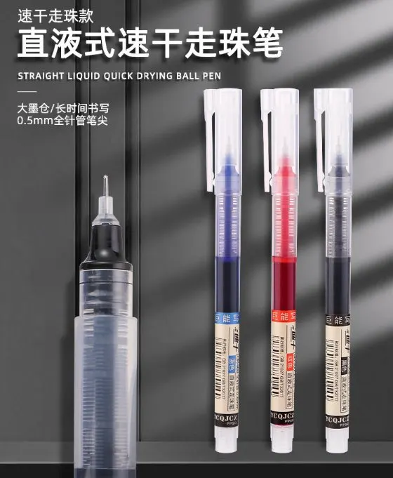 直液式走珠笔针管头黑色学生用速干中性笔大容量塑料高颜值签字笔