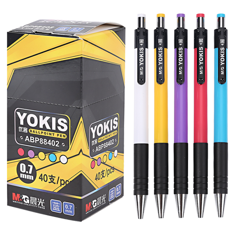 晨光红色按动圆珠笔 0.7mm子弹头原子笔中油笔 40支/盒ABP88402
