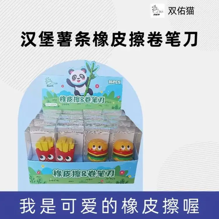 橡皮汉堡薯条造型 3D立体橡皮擦 铅笔卷笔刀笔刨可爱文具小礼品