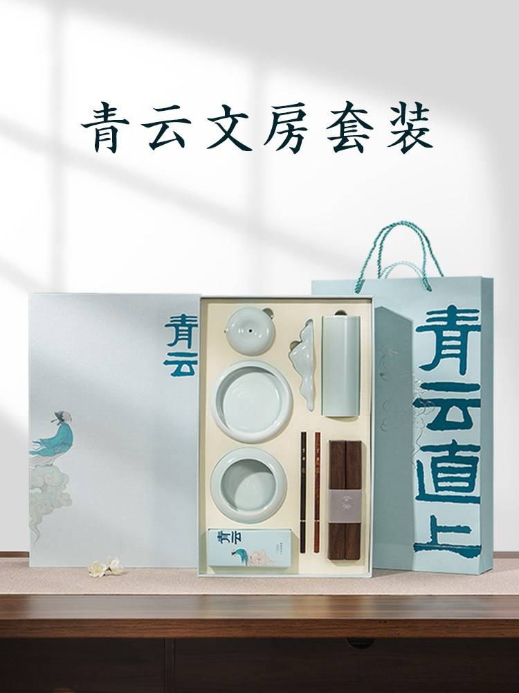 文房四宝套装青瓷高档礼盒装毛笔书法礼品墨纸砚初学入门专用工具