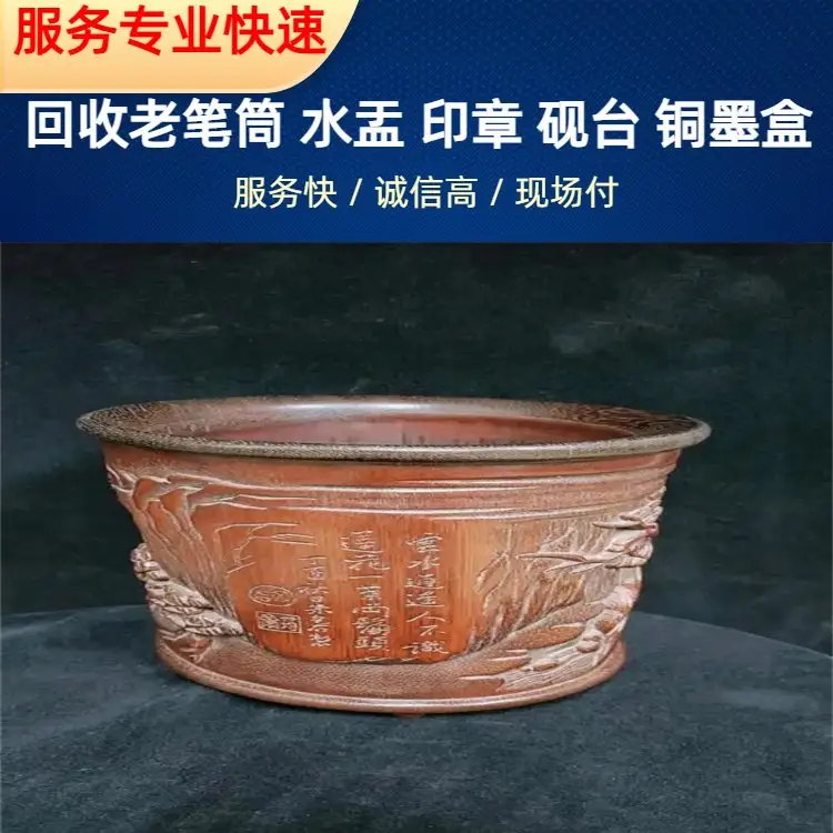 常年回收老砚 台 红木笔筒 老墨条 雕刻印章收购 专车上门提货