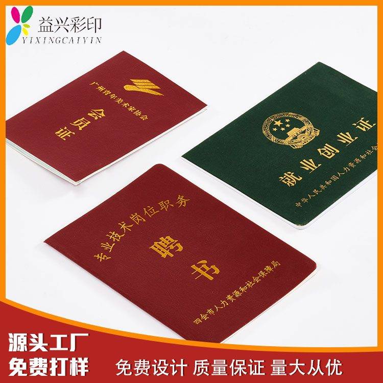 烫金技术手册协会会员证 岗位职务聘书 就业创业证书 定做制作厂家