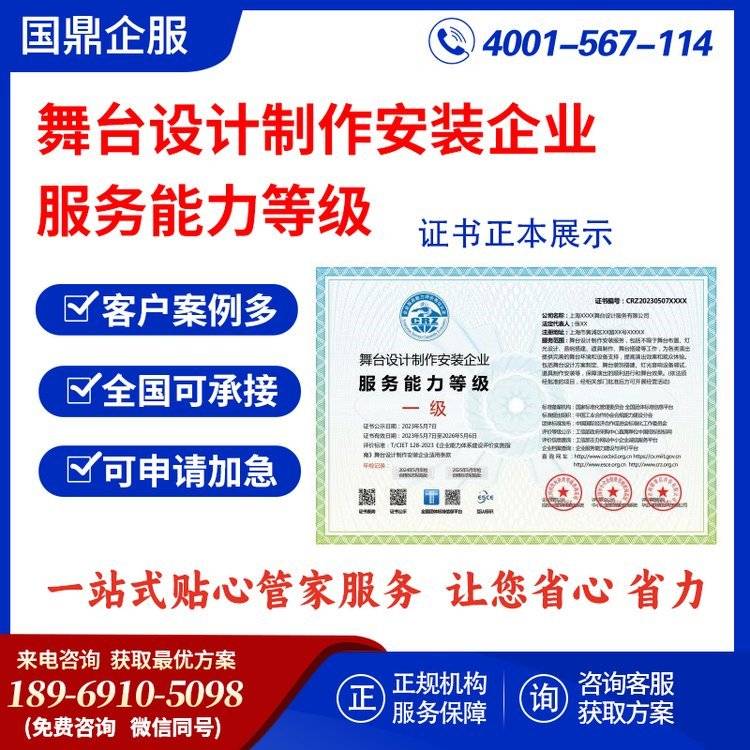 舞台设计制作安装企业服务能力等级证书 办理快捷统一申报窗口