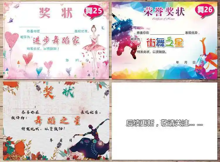 多款公舞蹈奖状证书 幼儿园培训学校舞蹈奖 励奖状 舞蹈批发