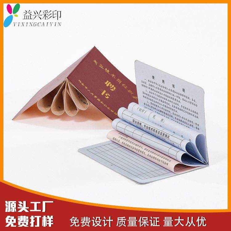 专业能力等级证订做 职业技能培训合格证证书封皮印刷 金线安全线纸
