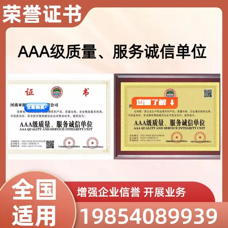 企业办理荣誉证书 AAA级质量、服务诚信单位 招投标加分