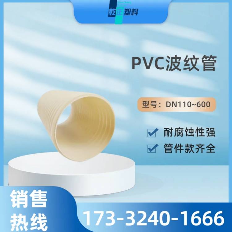 pvc-u双壁波纹管PVC排污水管材质聚录乙烯通讯地埋弱电管道