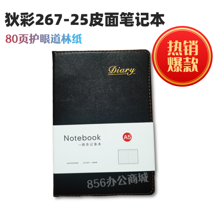 狄彩 267-25 黑色皮面本 商务记事本子 80页护眼纸
