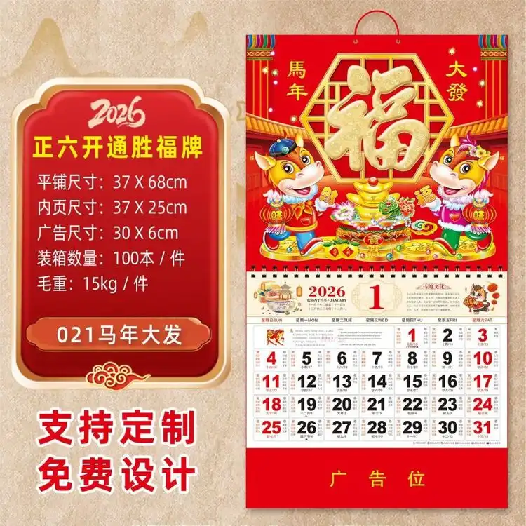 马年--2026年新款挂历定制福字高档挂墙日历整年黄历大号年历厂家