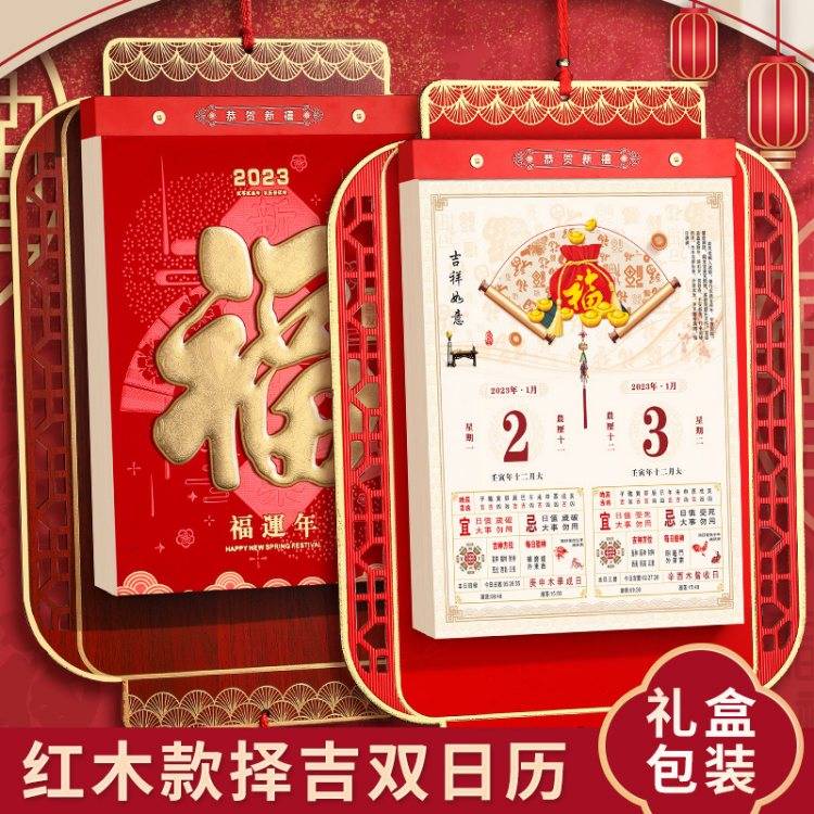 2023年兔年挂历福字定做手撕历万年历书老黄历家用挂墙批发大号月
