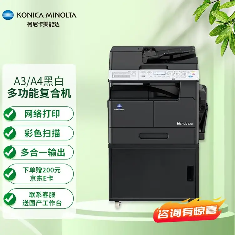 柯尼卡美能达 KONICA MINOLTA bizhub 225i A3黑白复印机a3a4打印机