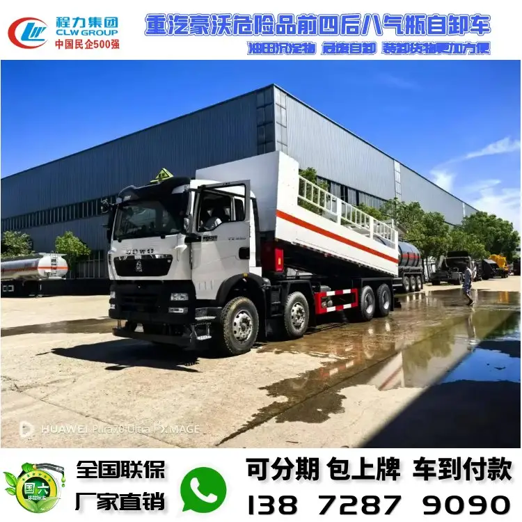 重汽豪沃前四后八危险品自卸车 危化品液压举升货厢气瓶运输车
